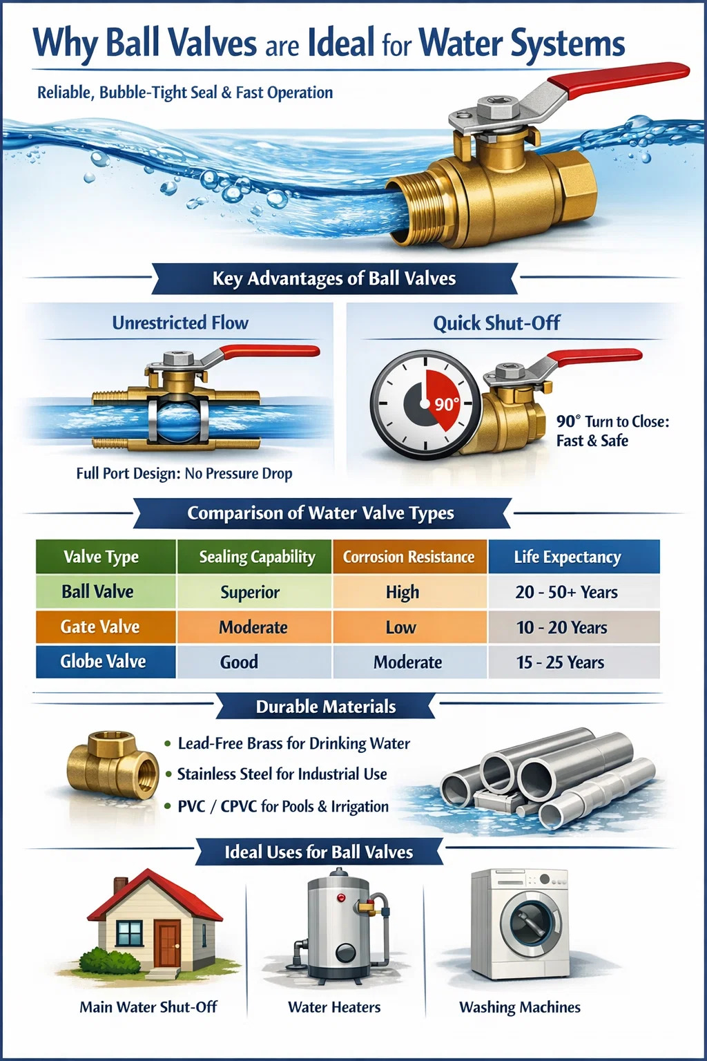 si, válvulas de bola Se consideran ampliamente la mejor opción para aplicaciones a base de agua, desde plomería residencial hasta tratamiento de agua industrial a gran escala. Su principal ventaja es su capacidad para proporcionar una sello hermético y mantener una alta confiabilidad durante décadas de servicio. A diferencia de las válvulas de compuerta más antiguas que podrían tener fugas o atascarse, una válvula de alta calidad válvula de bola garantiza que el flujo de agua quede completamente obstruido cuando está cerrado, evitando costosos daños por agua y desperdicio de recursos.