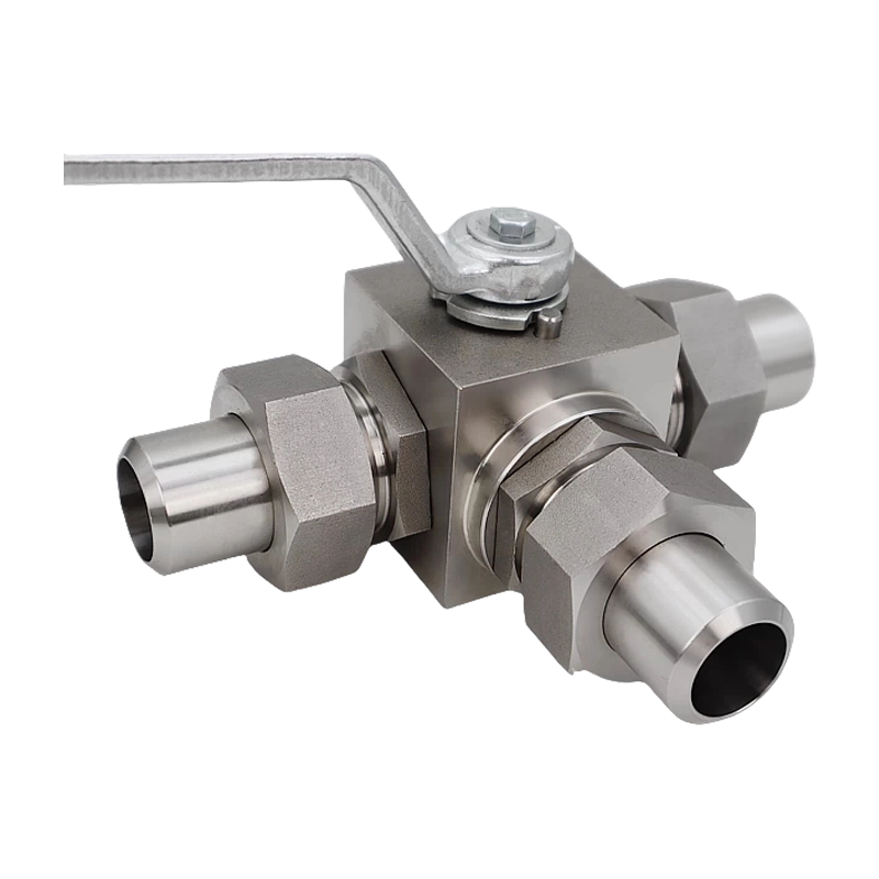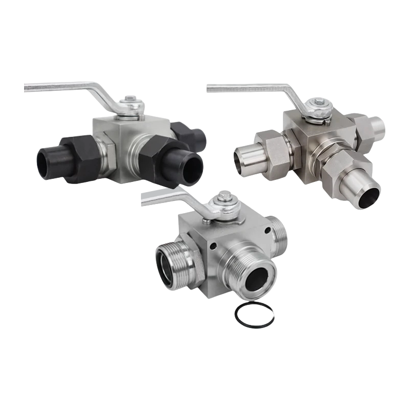 Válvula de bola de tres vías de alta presión de acero inoxidable KHB-3K 304/316L con orificios de montaje (puerto T y puerto L) Válvula de encendido/apagado
