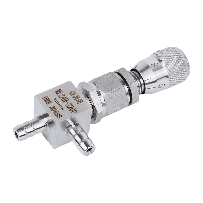 Válvula de ajuste fino de acero inoxidable WL24H-320P 304/316L con conectores de púas (recto/ángulo recto)